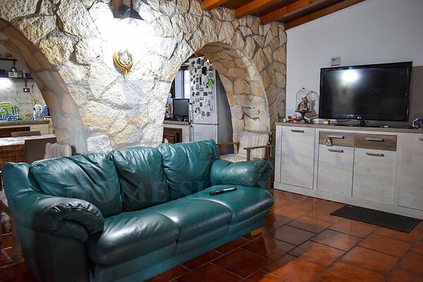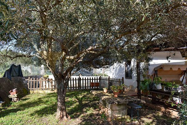 Outside, the property features approximately 1,500 square meters of land with fruit trees, olive trees, citrus trees, and ornamental plants, creating a productive and picturesque Mediterranean garden. The outdoor space is ideal for relaxation areas, a playground, pergolas, or small-scale home gardening projects, with the convenience of a setting that is already organized and livable. A significant plus is the parking area of approximately 100 square meters, convenient for multiple cars and any guests.