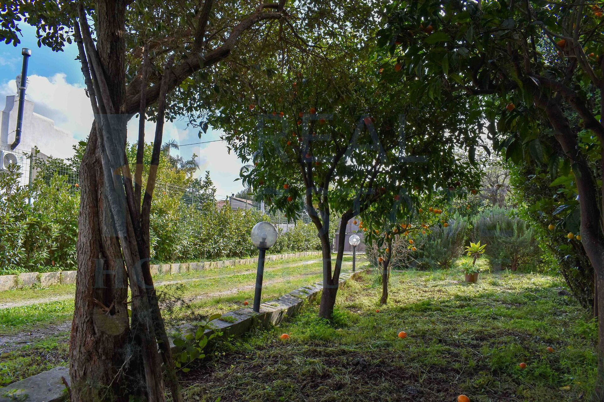 Land with orchard and dual entrances: ample parking and existing amenities
