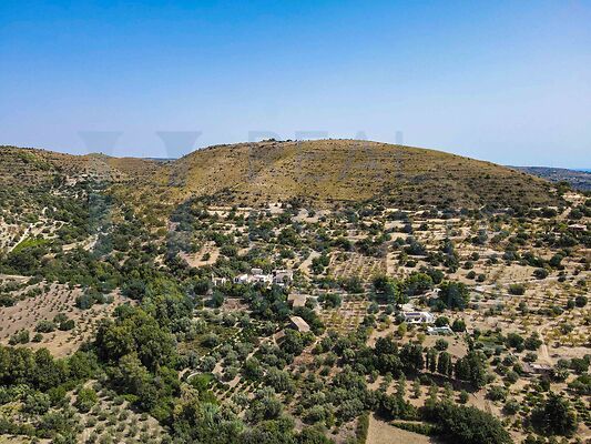 The land features numerous olive trees, centuries-old carob trees, and typical Mediterranean scrub, giving it strong agricultural, scenic, and environmental value. It is an ideal property for organic farming, olive oil production, or as the foundation for an agro-naturalistic project.