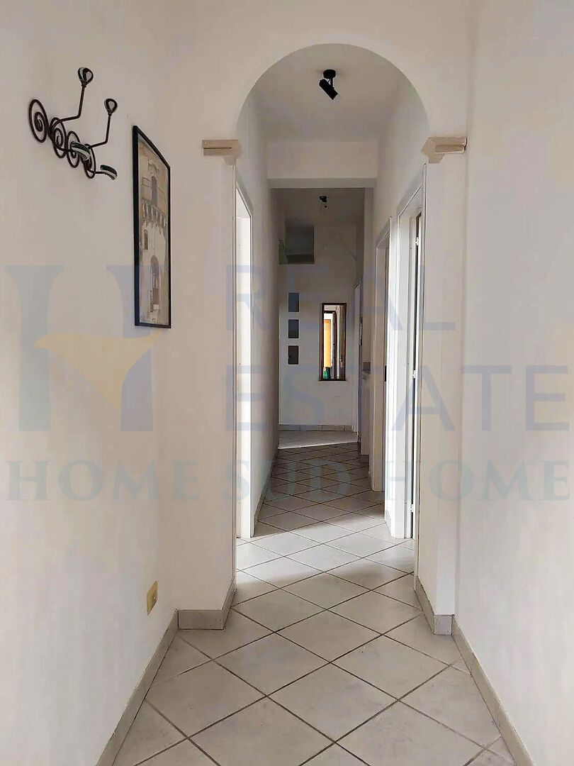 The sleeping area comprises three bedrooms and two bathrooms, one of which is en-suite, a feature particularly appreciated for its comfort and privacy. The property is entirely surrounded by balconies with open views, which increase the livability of the spaces and allow you to enjoy natural light throughout the day. On the second floor, there is a panoramic terrace shared with only one other unit, a rare added value that lends itself to outdoor moments, summer lunches, and relaxation with a view.