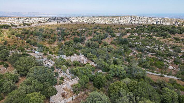 La posizione dominante del caseggiato regala una splendida vista aperta sulle campagne circostanti e sull’area di Cavagrande, con scorci suggestivi che cambiano con la luce e le stagioni. L’assenza di edificazioni invasive e la tutela dell’area naturale garantiscono un panorama intatto e un’atmosfera di grande fascino, perfetta per un progetto di vita o investimento legato alla sostenibilità.