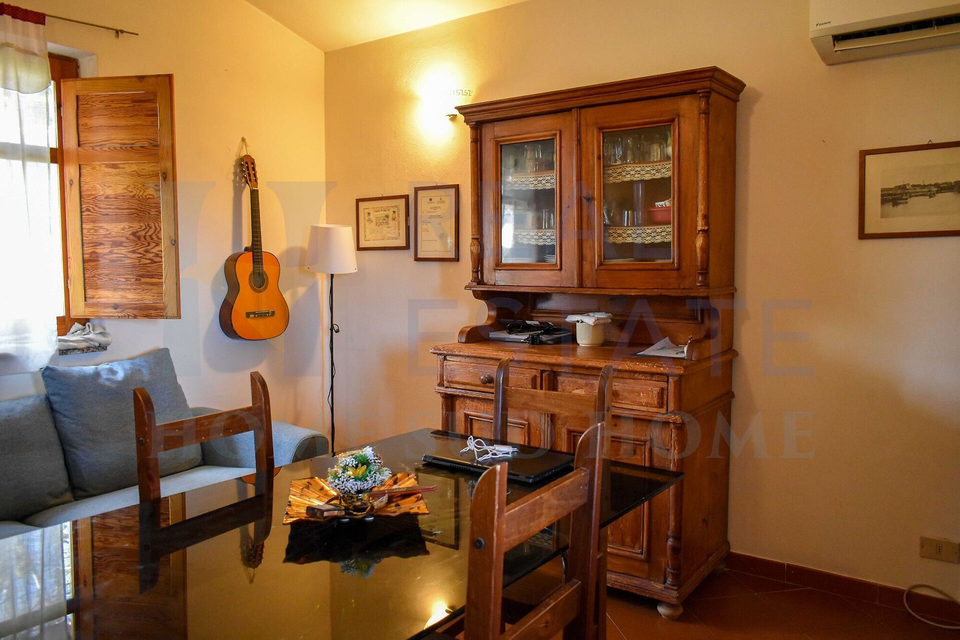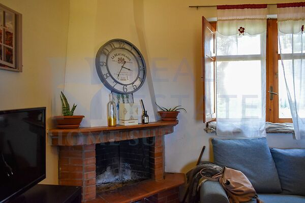 La disposizione interna comprende una cucina, una camera da letto, un bagno e una sala con camino, ambiente accogliente che rappresenta il cuore della casa. Una veranda panoramica completa la proprietà, offrendo uno spazio perfetto per vivere l’esterno e godere appieno del panorama marino e dei tramonti sul Mediterraneo.Terreno Privato, Ulivi e Panorama sulla Campagna e sul Mare